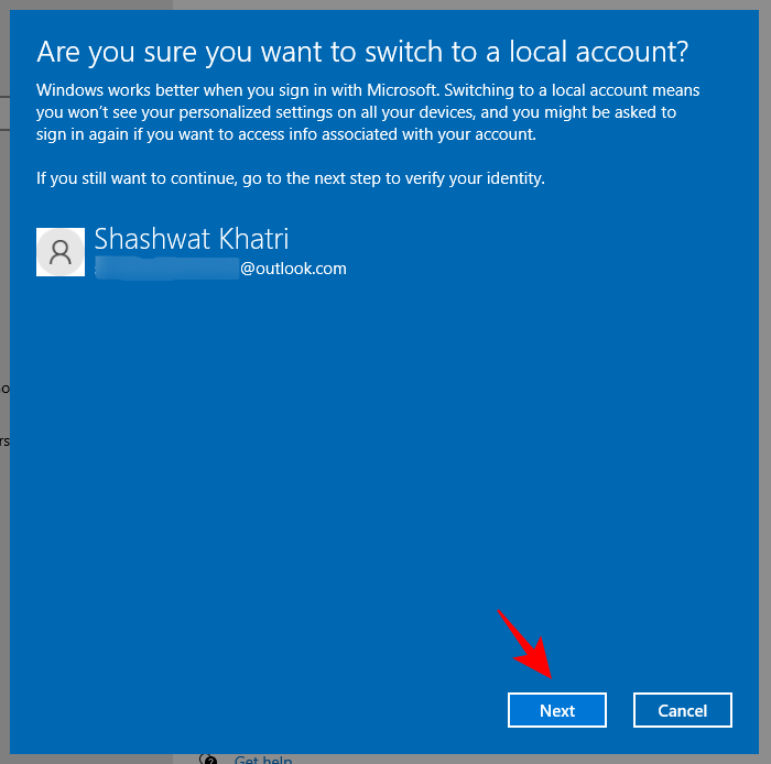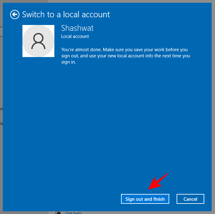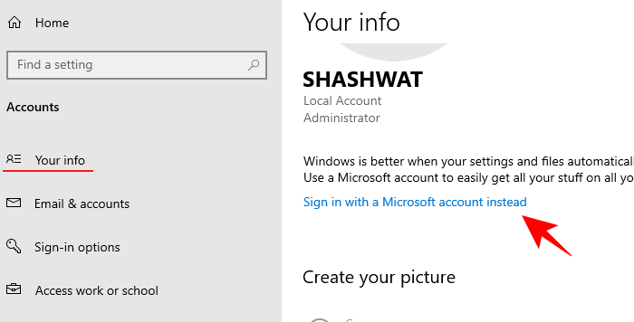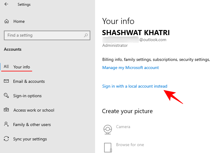 在左侧面板中选择您的信息,然后单击 右侧的使用本地帐户登录 。