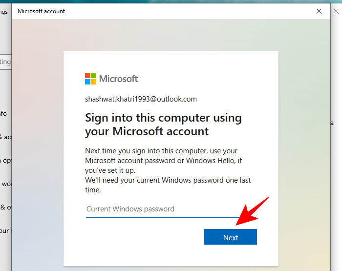 重新登录并转到相同的“设置帐户”页面。现在,您将看到一个新选项 – 使用 Microsoft 帐户登录。点击它。
