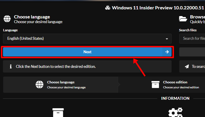 在这里您需要选择您的操作系统语言。您可以从下拉菜单中自由选择您想要的任何语言,然后单击“下一步”。