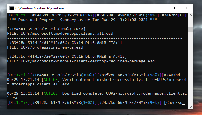 我们在 Windows 上,所以我们将打开“_windows”文件。打开后,将打开命令提示符/终端窗口,加载几秒钟后,您将看到 Windows 11 Insider Preview 的下载进度。