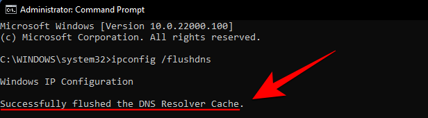 您现在将收到一条确认消息,表明 DNS 解析器缓存已被刷新。