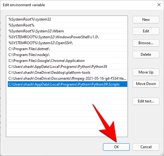 由于我们已经展示了如何在 Windows 11 上安装 PIP,因此问题肯定在于 Path 环境变量未更新。要修复此错误消息,请按照以下说明进行操作: