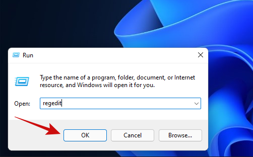 按Win key + r打开运行对话框。在那里,输入regedit并按回车键。
