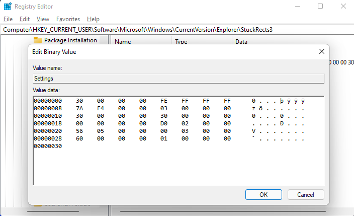 HKEY_CURRENT_USER\SOFTWARE\Microsoft\Windows\CurrentVersion\Explorer\StuckRects3