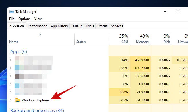 在“进程”选项卡中,向下滚动列表以查找名为“Windows 资源管理器”的进程。