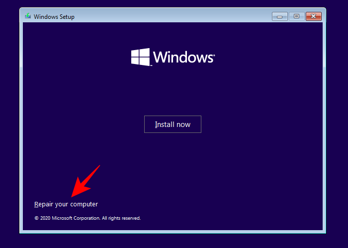 另一种方法是使用 Windows 安装介质访问恢复。在 Windows 安装程序中,单击 下一步…