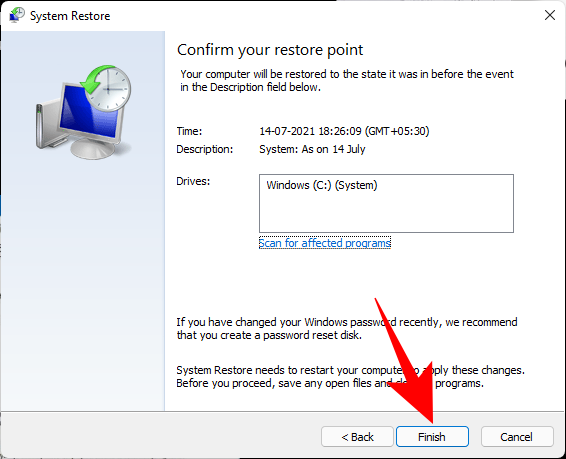 每当进行重大更改(例如应用新更新)时,Windows 11 都会创建系统还原点。