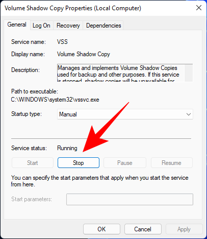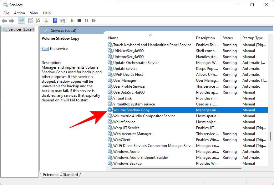 向下滚动并查找 Volume Shadow Copy。双击它。