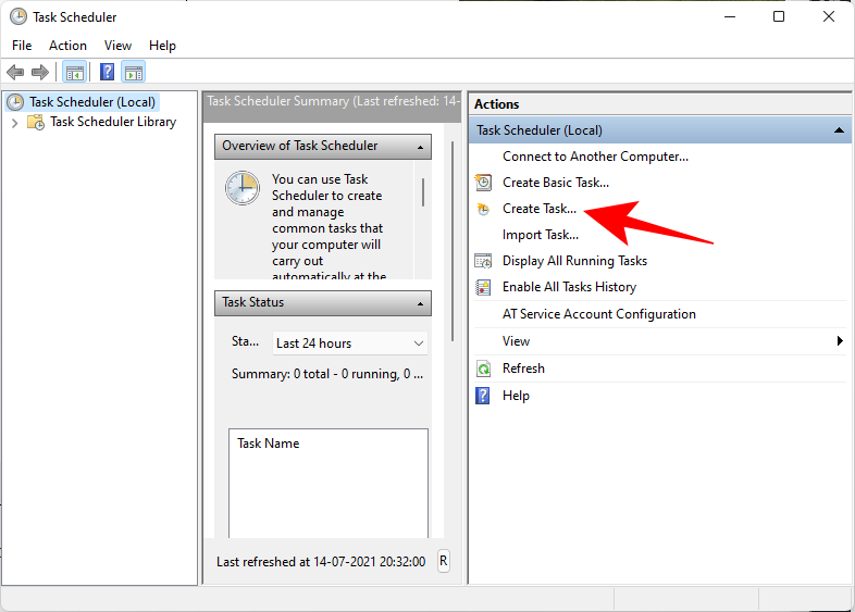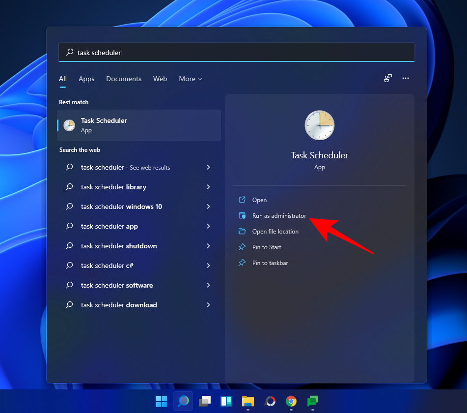 现在,下一步是在 Windows 任务计划程序中创建一个任务,以便在 Windows 启动时创建一个还原点。为此,请按“开始”,键入“任务计划程序”并按 Enter。