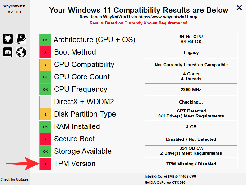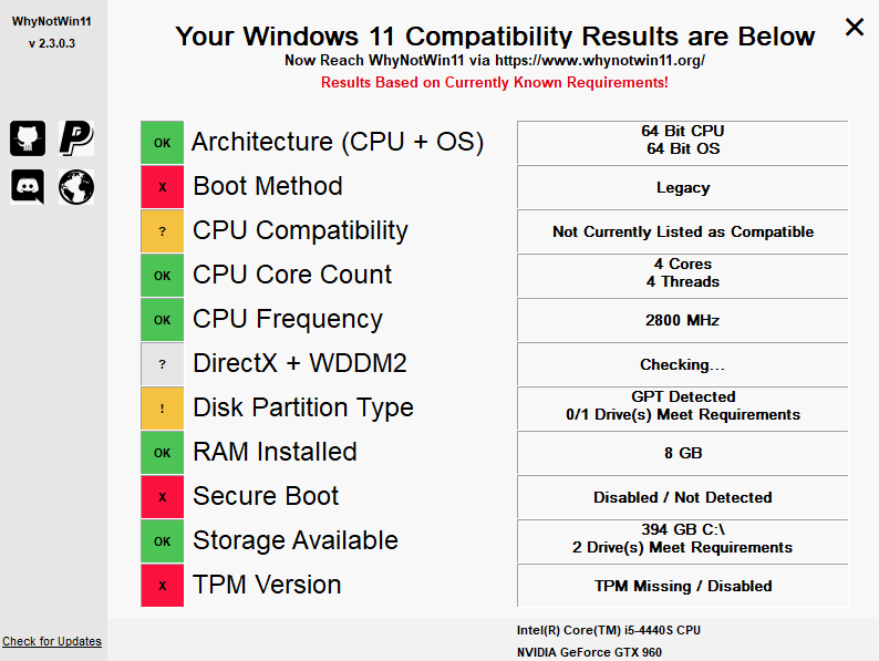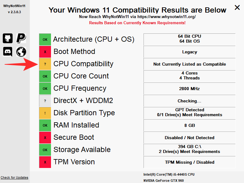 “WhyNotWin11”是一个系统要求检查器,专门用于检查您的 PC 是否能够运行 Windows 11。该应用程序可通过 Github 免费获得,并显示您是否有能力运行操作系统。当然,系统需求是从微软官方的系统需求页面获取的。