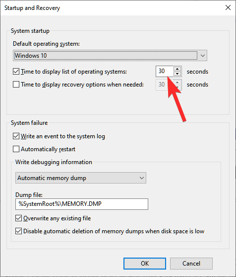 选择您希望系统允许您在使用您在此处选择的默认系统启动之前重新启动 PC 时选择操作系统的时间。