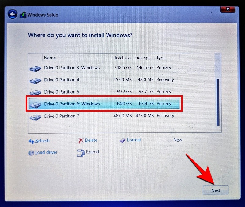 这就是为什么总的来说,最好将它安装在单独的驱动器上。如果您已按照步骤 0.1 中所述创建了单独的驱动器,请选择此驱动器以安装 Windows 11,然后单击“下一步”。