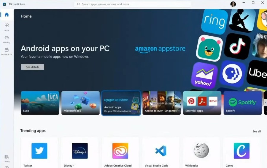 任何 Android 用户都知道 Google Play 商店的重要性。它允许您下载喜爱的应用程序、获取更新等等。不幸的是,据我们所知 – 并且在演示中看到 – Microsoft 11 没有与著名的 Android 市场一起提供。