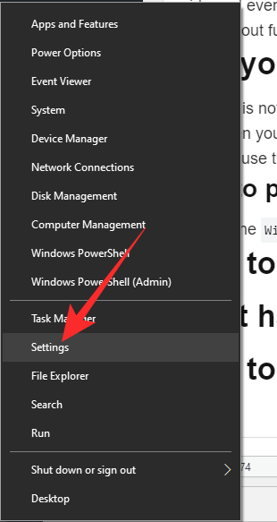 要暂停更新,请先按 Windows + X 按钮,然后转到“设置”。