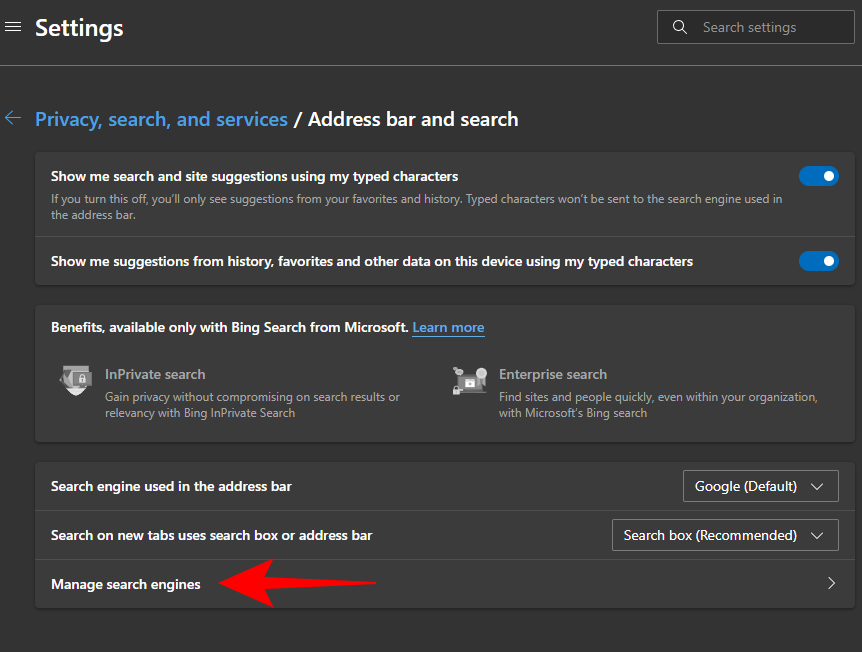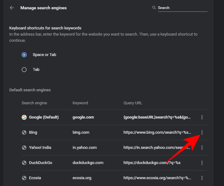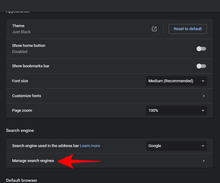 向下滚动到“搜索引擎”,然后单击“ 管理搜索引擎”。
