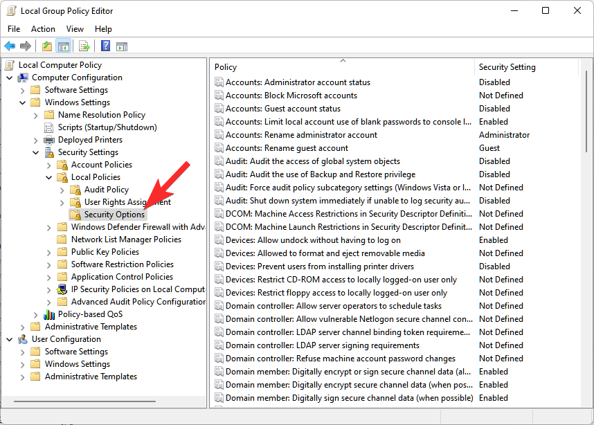 Computer Configuration\Windows Settings\Security Settings\Local Policies\Security Options\