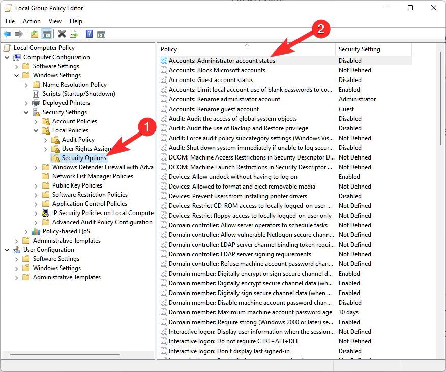 现在将通过 Windows 11 中的组策略编辑器在您的 PC 上禁用默认管理员帐户。