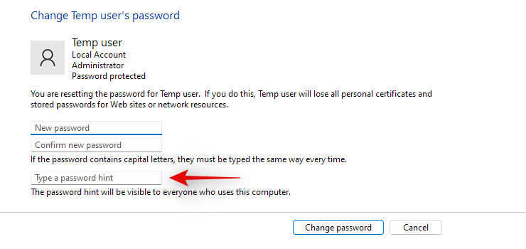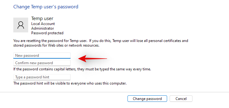 就是这样!现在应该在您的 PC 上更改您的默认管理员帐户的密码。