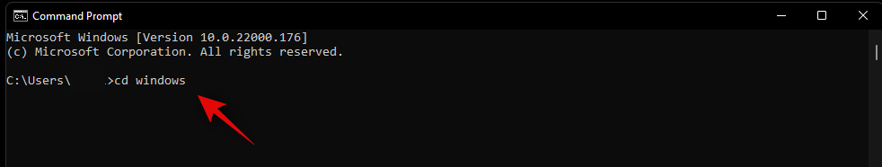 您现在将被带到 CMD 中的默认启动驱动器。输入以下命令并按键盘上的 Enter 执行它。
