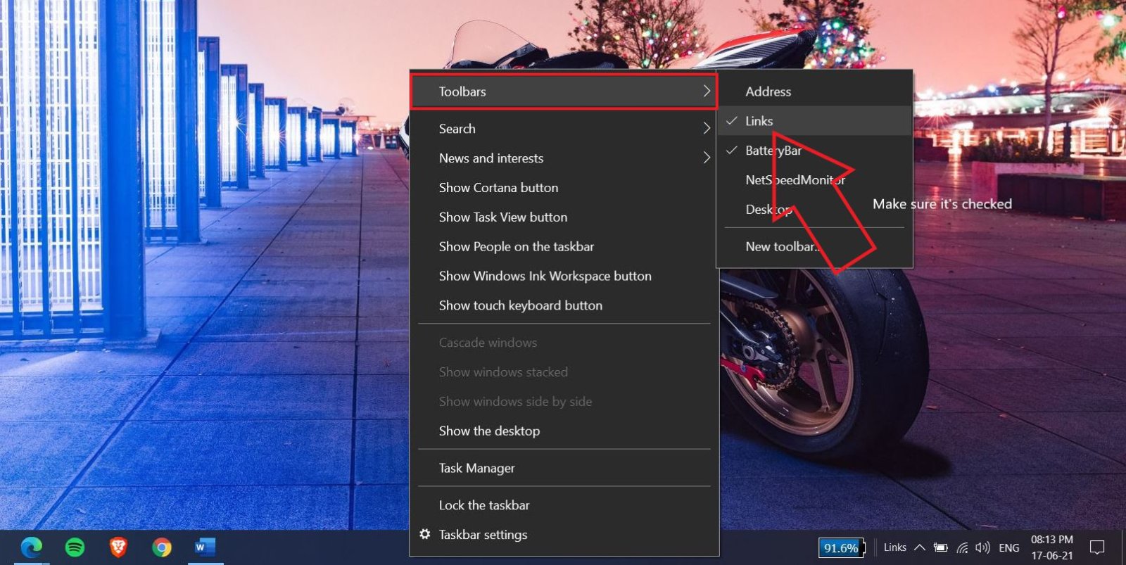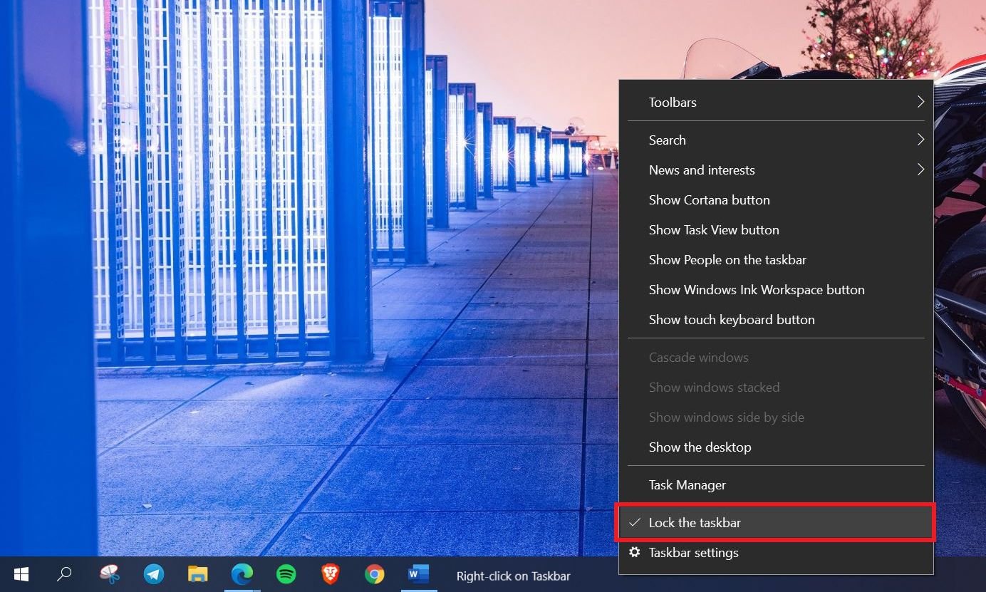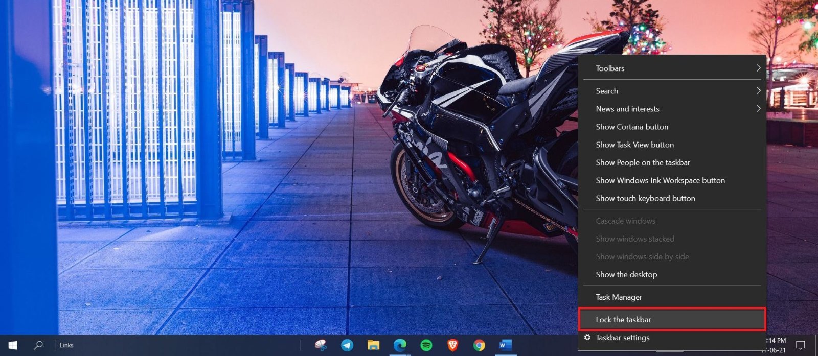 - 现在,通过点击锁定任务栏来锁定任务栏。