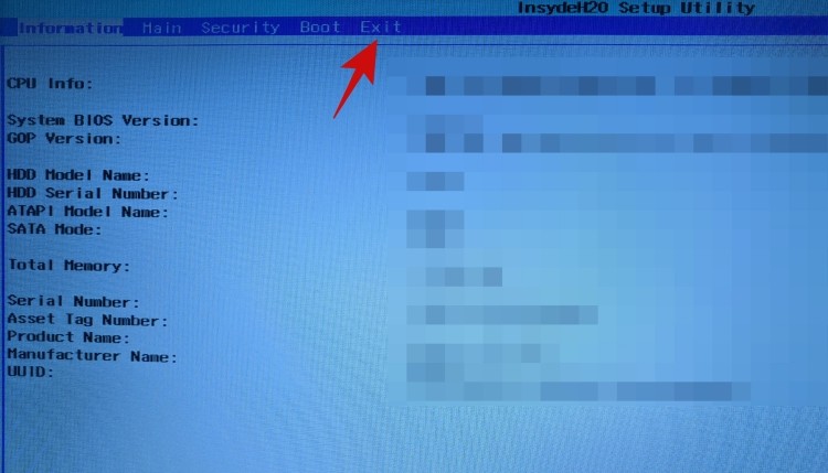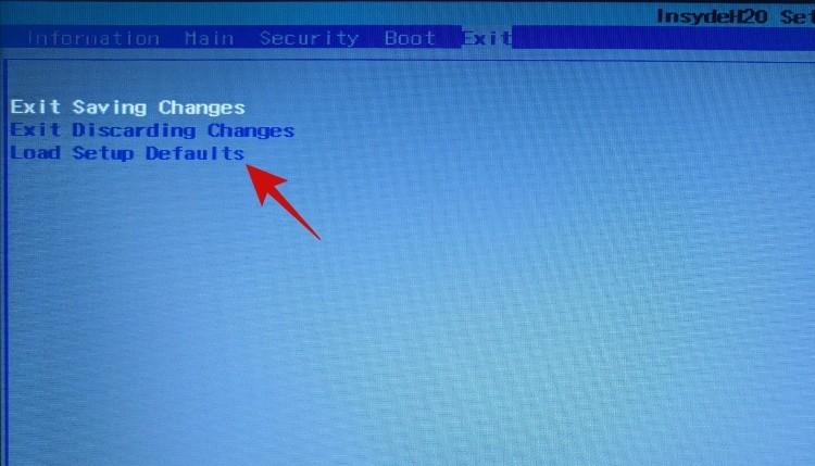 我们必须使用箭头键导航到“退出”部分,重置为默认选项所在的部分。