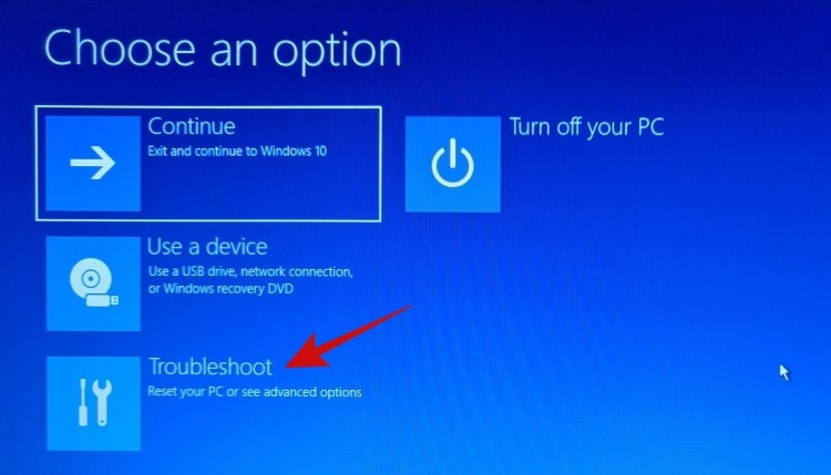 您的 PC 应该启动到带有一系列选项的蓝屏。单击“疑难解答”。
