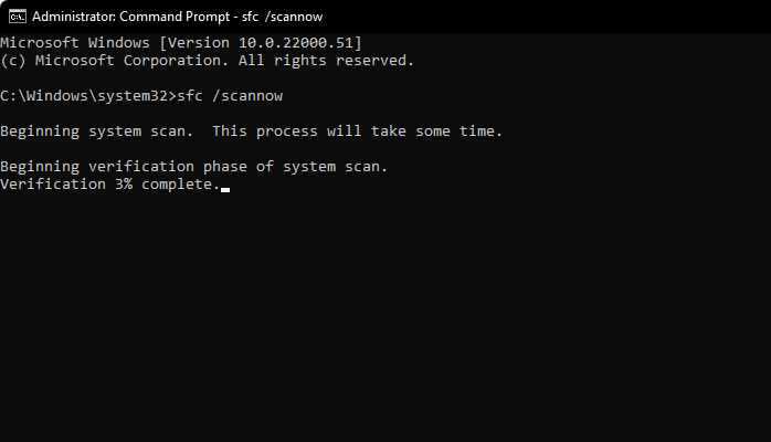 下一步是验证所有 Windows 11 文件的完整性,以确保它们处于良好状态。为此,我们将使用 SFC 工具。