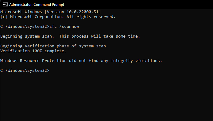 上面的命令只需几分钟即可完成对 Windows 文件完整性的扫描。完成后,结果应如下所示。