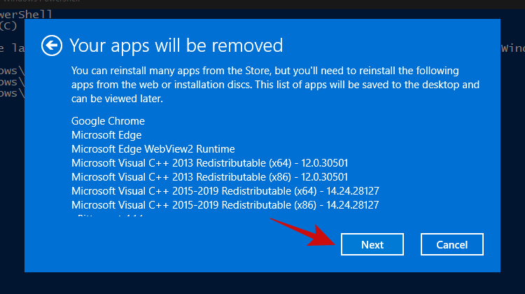 在几分钟内,Windows 应该会为您提供一个应用列表,这些应用将在重置后从您的 PC 中删除。这是我们的列表的样子。