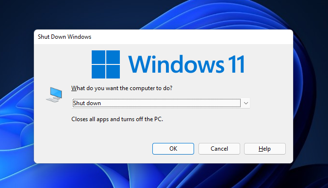 确保关闭所有应用程序和文件。或者,只需同时按下即可进入桌面屏幕 Windows key + D 。现在,同时按下 Alt + F4 键盘上的键以显示“关闭 Windows”屏幕。