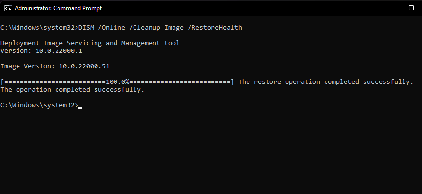 一旦该命令恢复了所有损坏的文件,您应该会看到类似这样的内容。