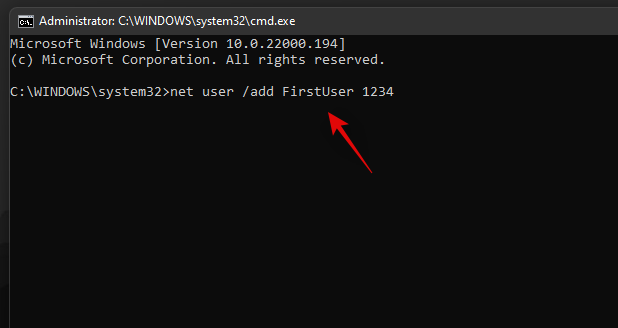 输入以下命令,然后按键盘上的 Enter。将“USER”替换为新帐户所需的用户名。同样,将“密码”替换为您想要的密码。
