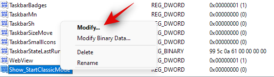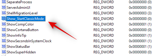 在您的右侧查找“Show_StartClassicMode”并右键单击它。
