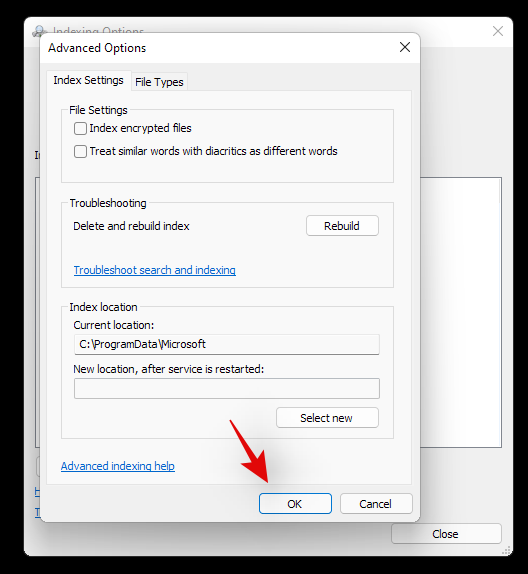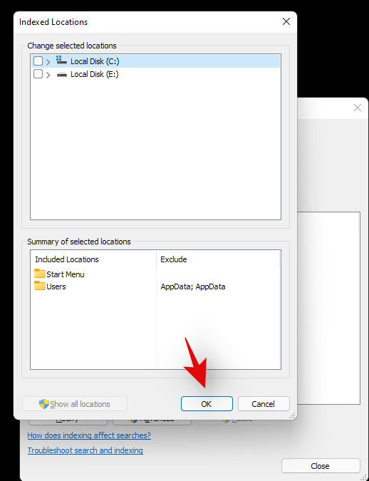 您应该会看到一个名为“索引选项”的弹出窗口打开。单击“修改”按钮。