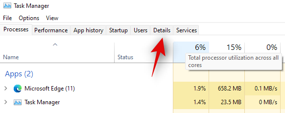按 Ctrl + Shift + Esc 键盘上的打开“任务管理器”。现在单击顶部的“详细信息”以切换到“详细信息”选项卡。