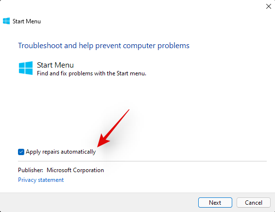 疑难解答程序现在将执行其操作并尝试修复系统上的“开始”菜单。发现的任何错误或问题都将自动修复,现在应该在您的系统上恢复“开始”菜单的功能。