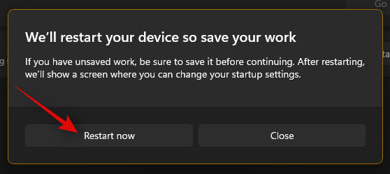 注意: 此命令将立即重新启动您的 PC。如果您在后台有任何正在进行的工作,请确保在继续本指南之前将其保存。