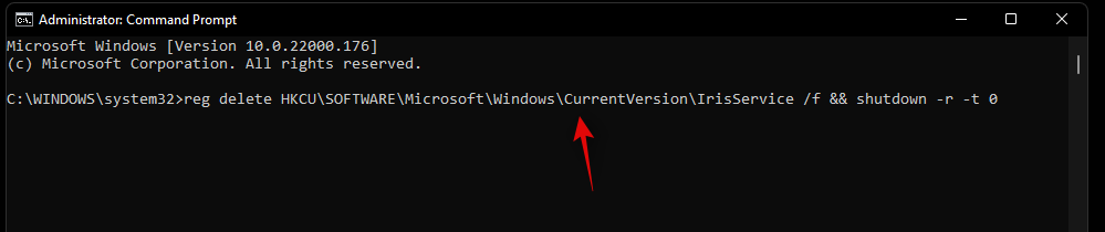 reg delete HKCU\SOFTWARE\Microsoft\Windows\CurrentVersion\IrisService /f && shutdown -r -t 0