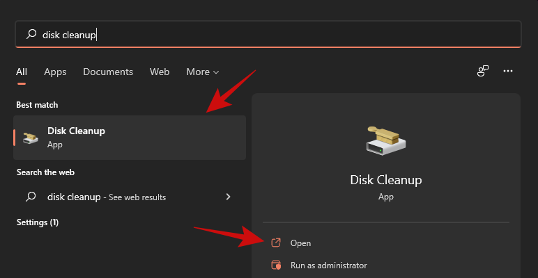 打开“开始”菜单并输入“磁盘清理”。单击任一突出显示的选项。