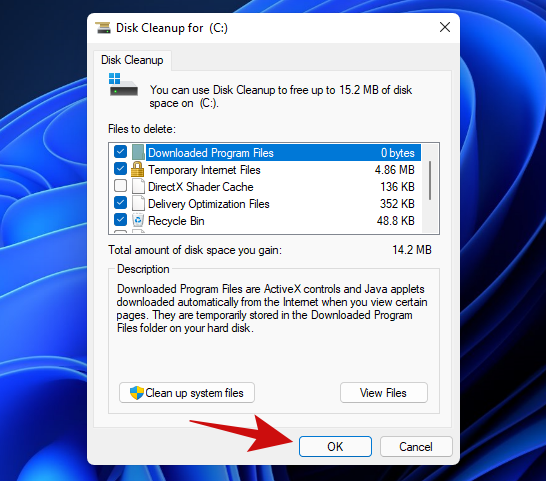 提示:上方屏幕上的“清理系统文件”按钮可让您清除旧的系统还原点和其他不必要的系统文件,以释放更多空间。我们建议尝试一下。