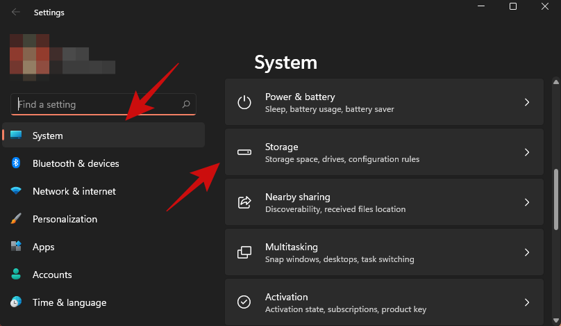 单击系统,然后单击“存储”,如下所示。