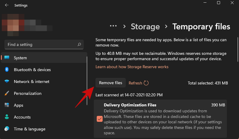 结果我们的 PC 有接近 500MB 的缓存。您可以简单地浏览列表并勾选要删除的项目。完成后,单击“删除文件”按钮开始清理。