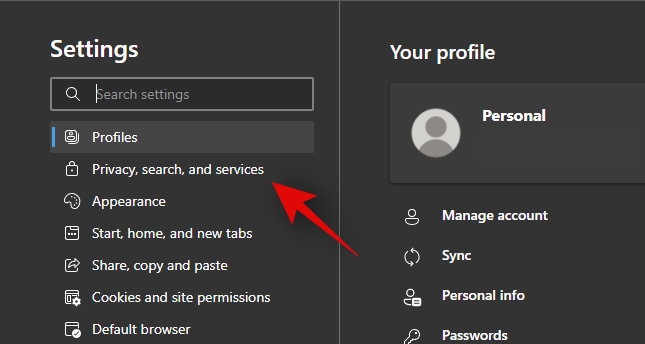 现在点击左侧的“隐私、搜索和服务”。