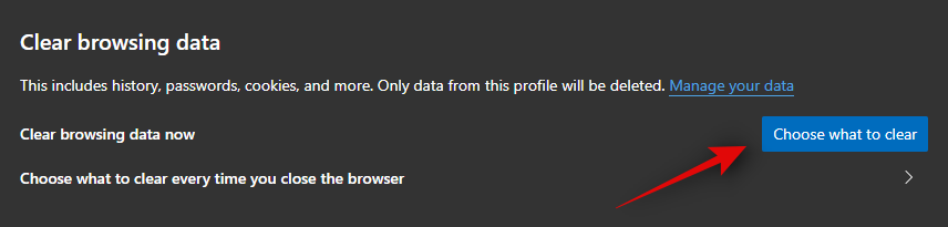 单击“清除浏览数据”下的“选择要清除的内容”。