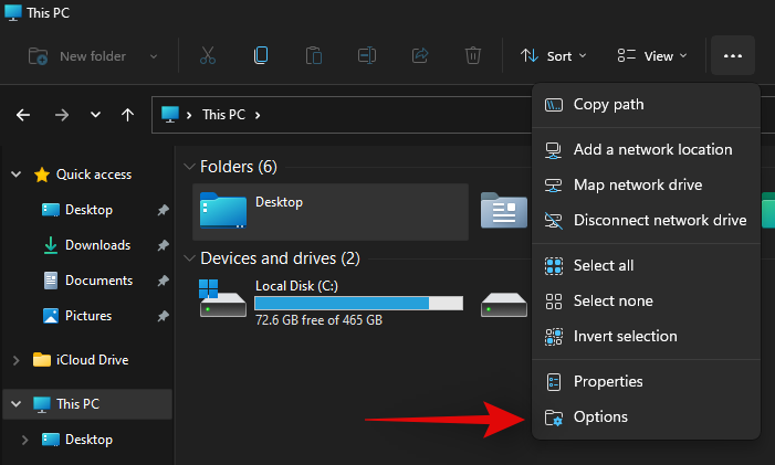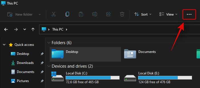 按Windows + E键盘上的键打开系统上的文件资源管理器。单击屏幕右上角的“三点”菜单图标。