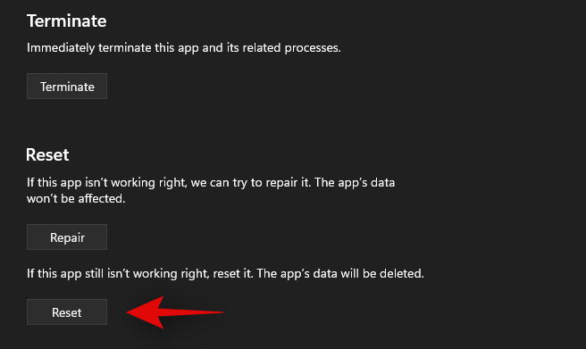 再次单击“重置”以确认您的选择。