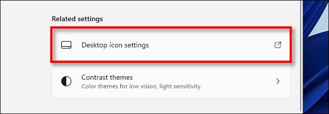 当个性化设置窗口出现时,在左侧边栏中选择“主题”。然后,单击“相关设置”下的“桌面图标设置”。
