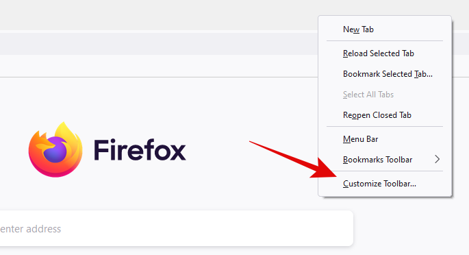 打开 Firefox 并右键单击工具栏中的。现在选择“自定义工具栏”。