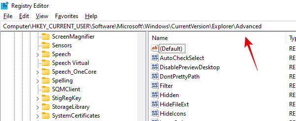 Computer\HKEY_CURRENT_USER\Software\Microsoft\Windows\CurrentVersion\Explorer\Advanced