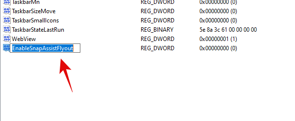 输入“EnableSnapAssistFlyout”作为名称,然后按键盘上的 Enter。